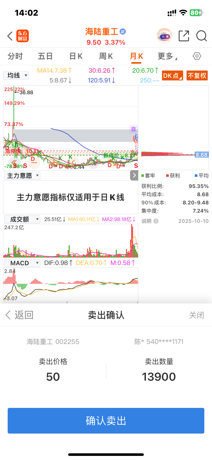 $海陆重工(SZ002255)$ 希望主力接我的筹码,50等你!
