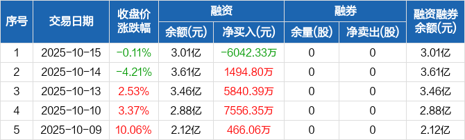 海陆重工:融资净偿还6042.33万元,融资余额3.01亿元(10-15)