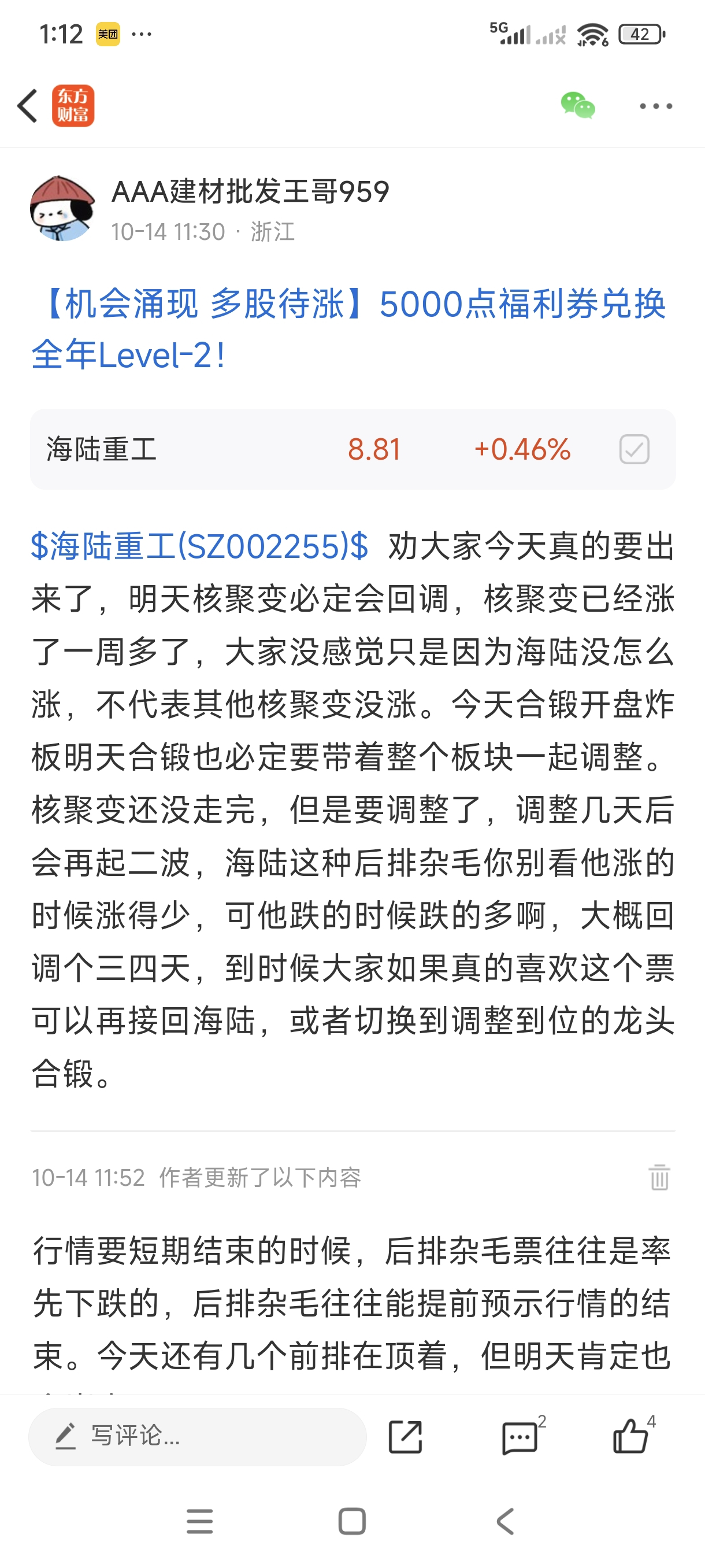 $海陆重工(SZ002255)$ 不得不拿出我在10.14号发的贴了