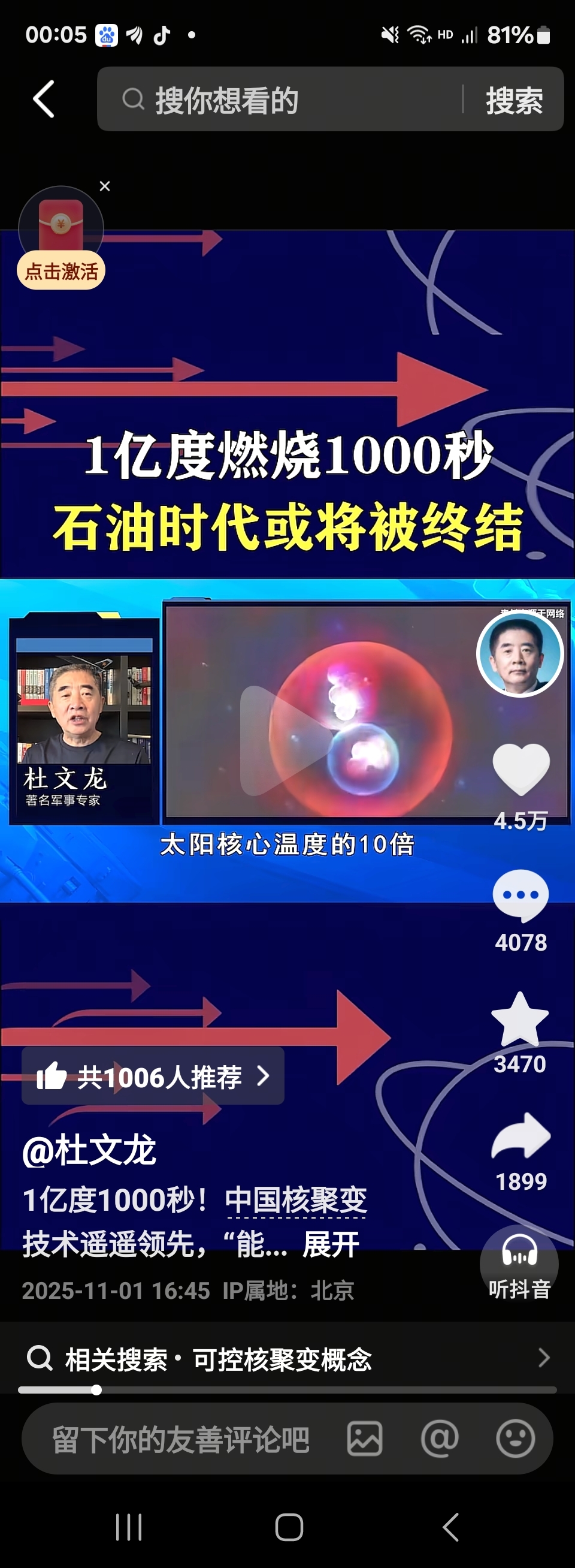 $海陆重工(SZ002255)$ 可控核电又有新的进展,将改变人类历史,告别石油时代,前途无量