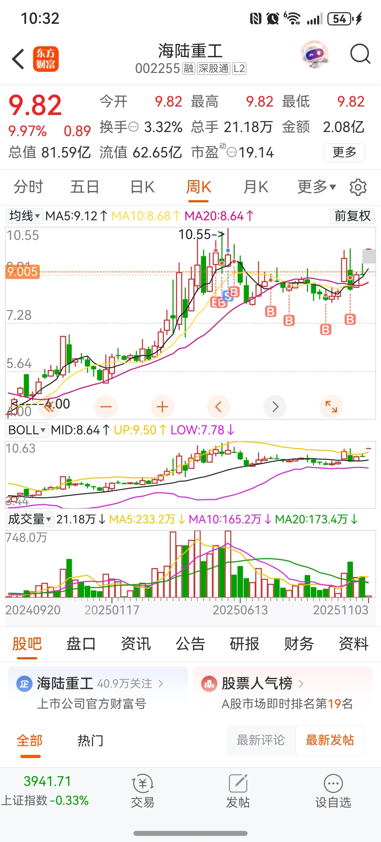 $海陆重工(SZ002255)$ 预测一下这波几个涨停
