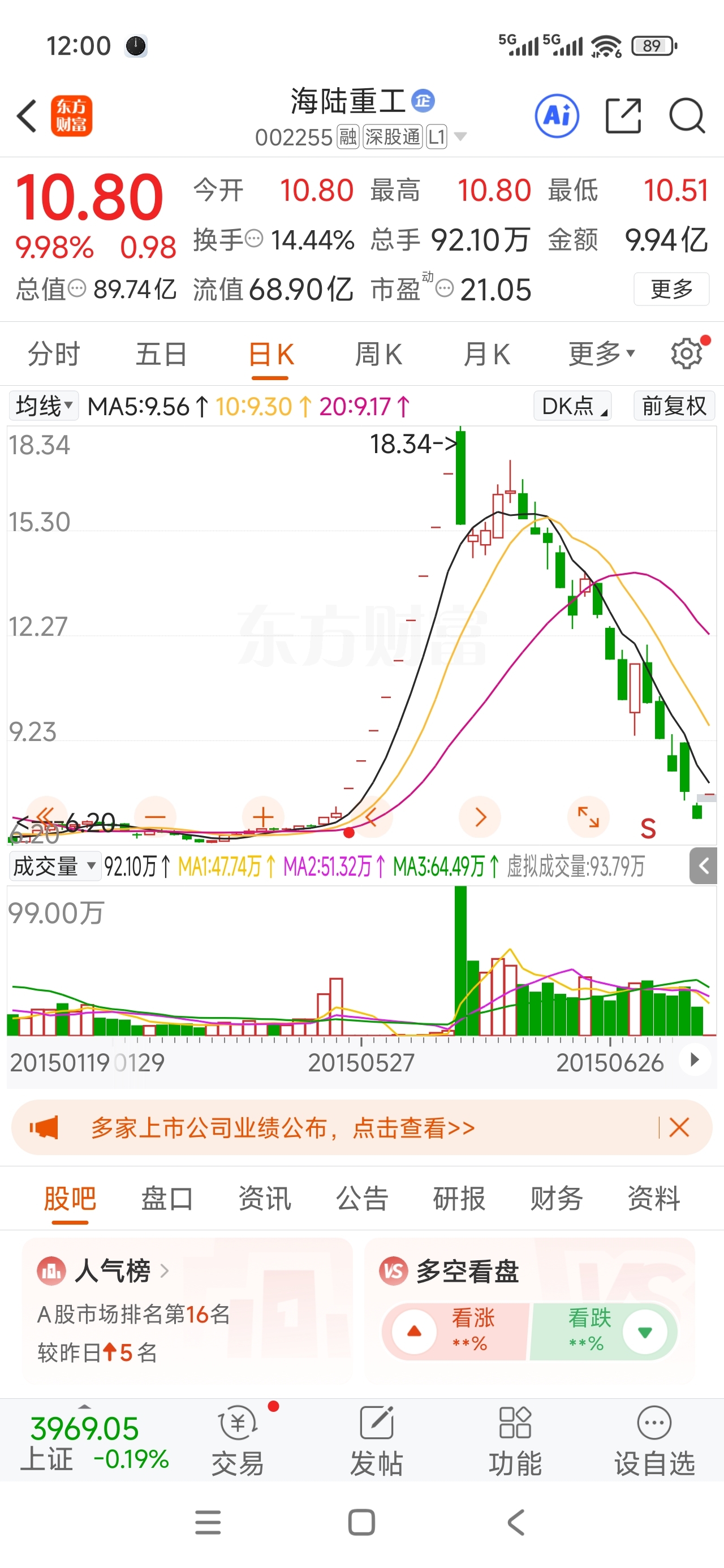 $海陆重工(SZ002255)$ 该股在2015年上涨曾经十连板