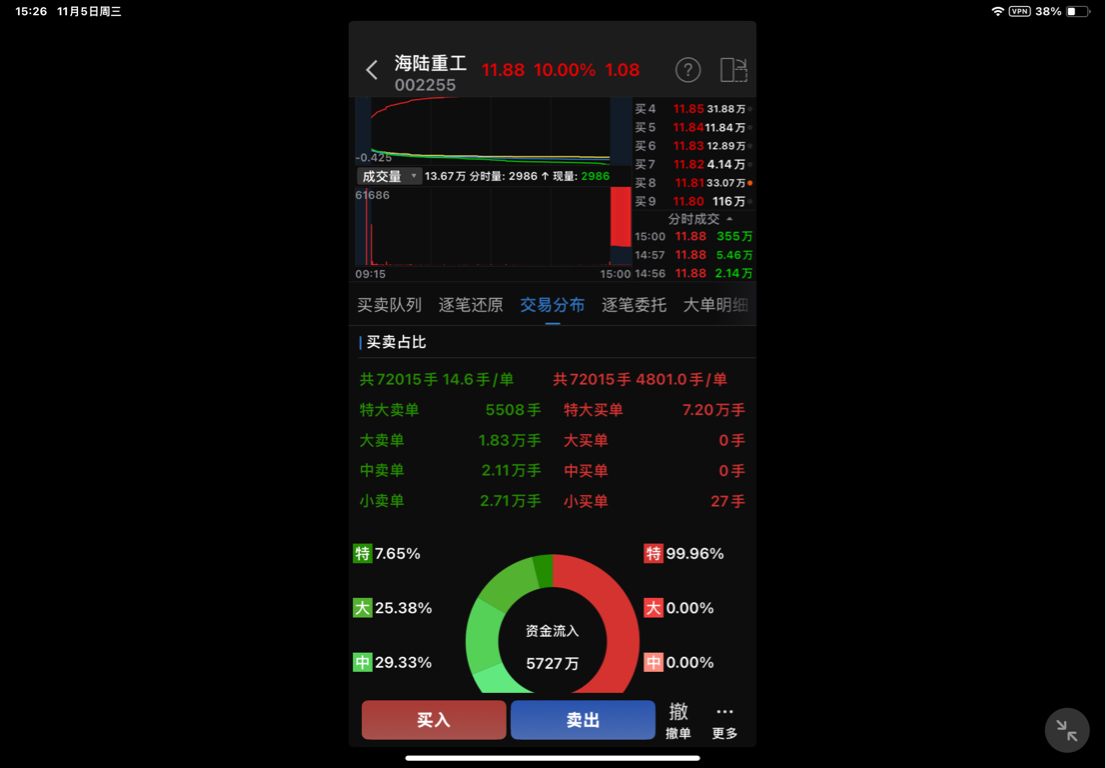 $海陆重工(SZ002255)$ 666 朱莉吃独食不叫我