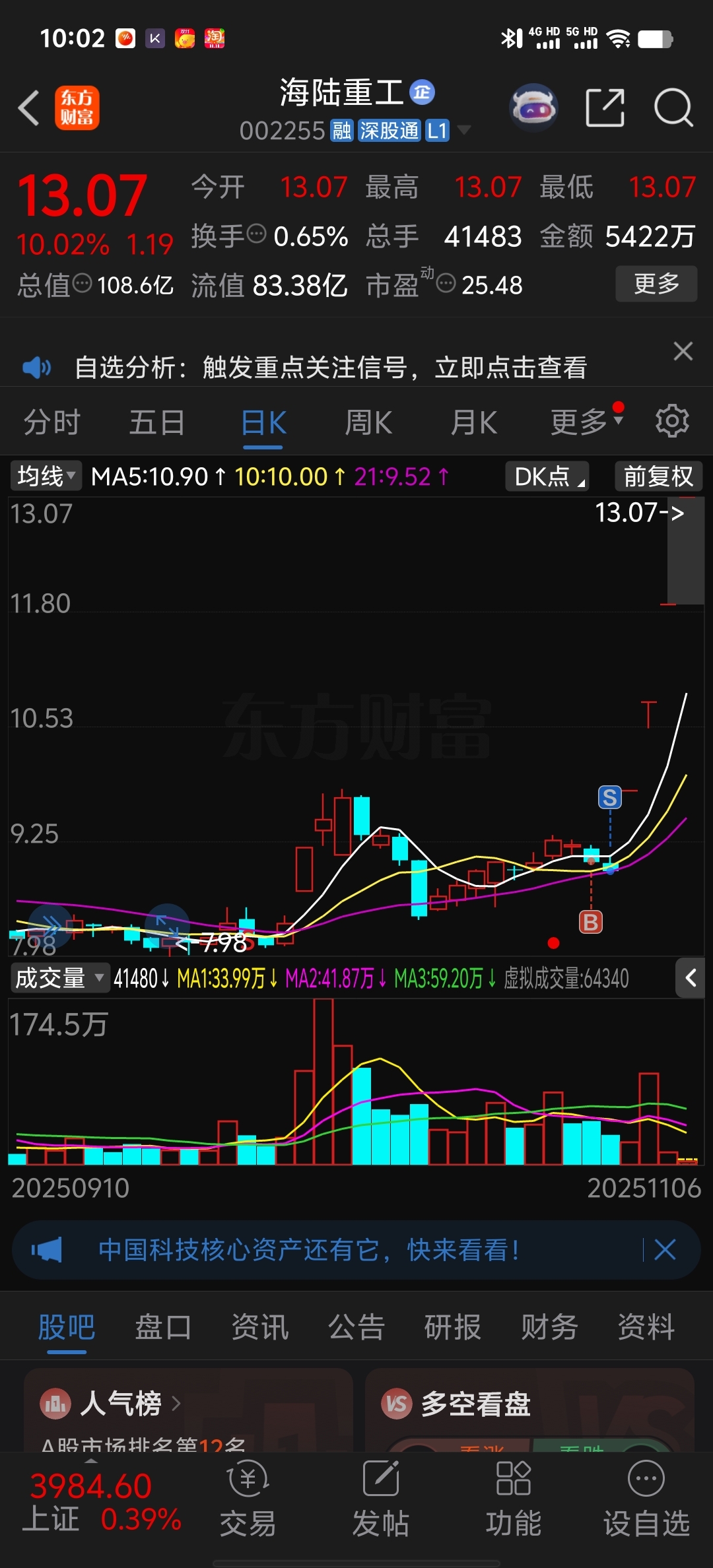 $海陆重工(SZ002255)$ 买定离手,卖定离场,棋差一步