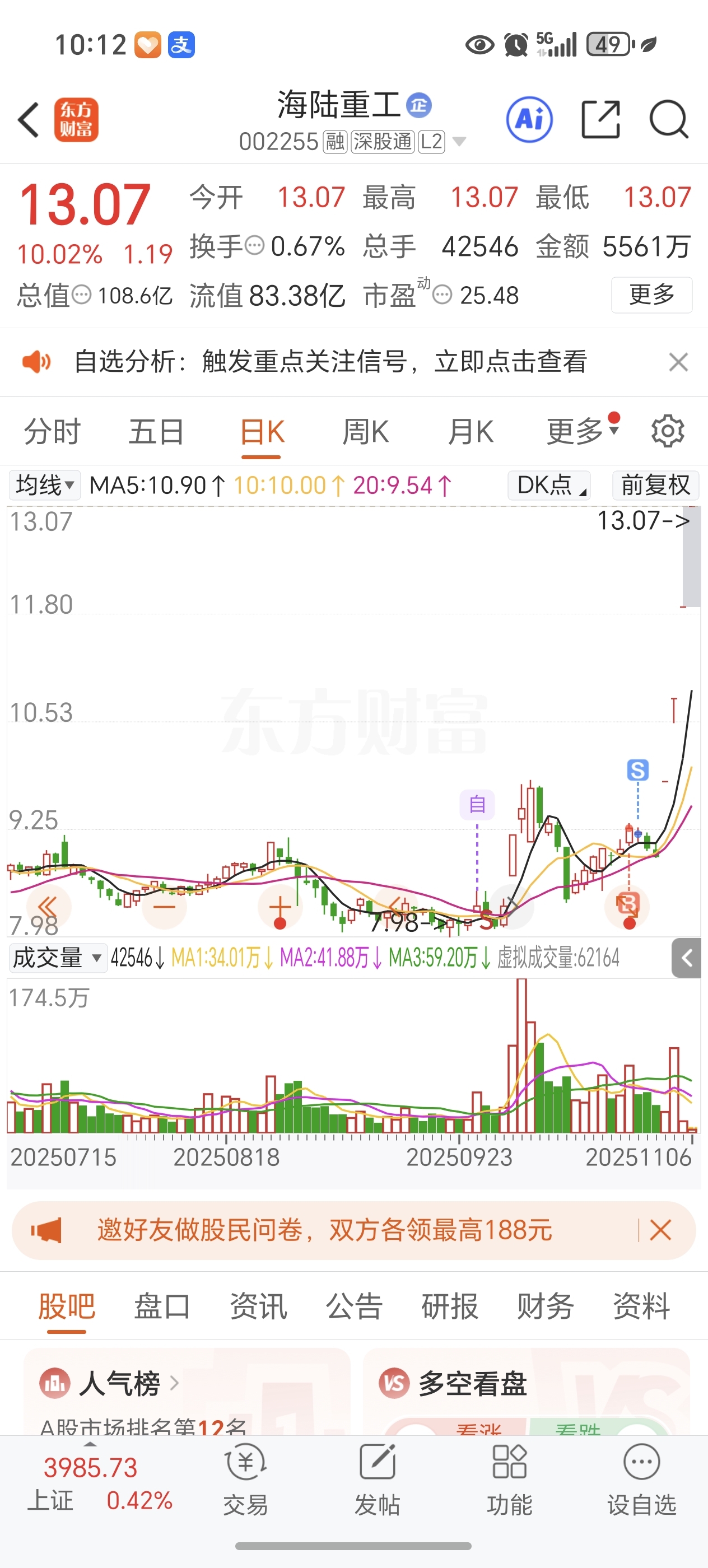 $海陆重工(SZ002255)$ 韭菜命,买了6万亏钱卖了