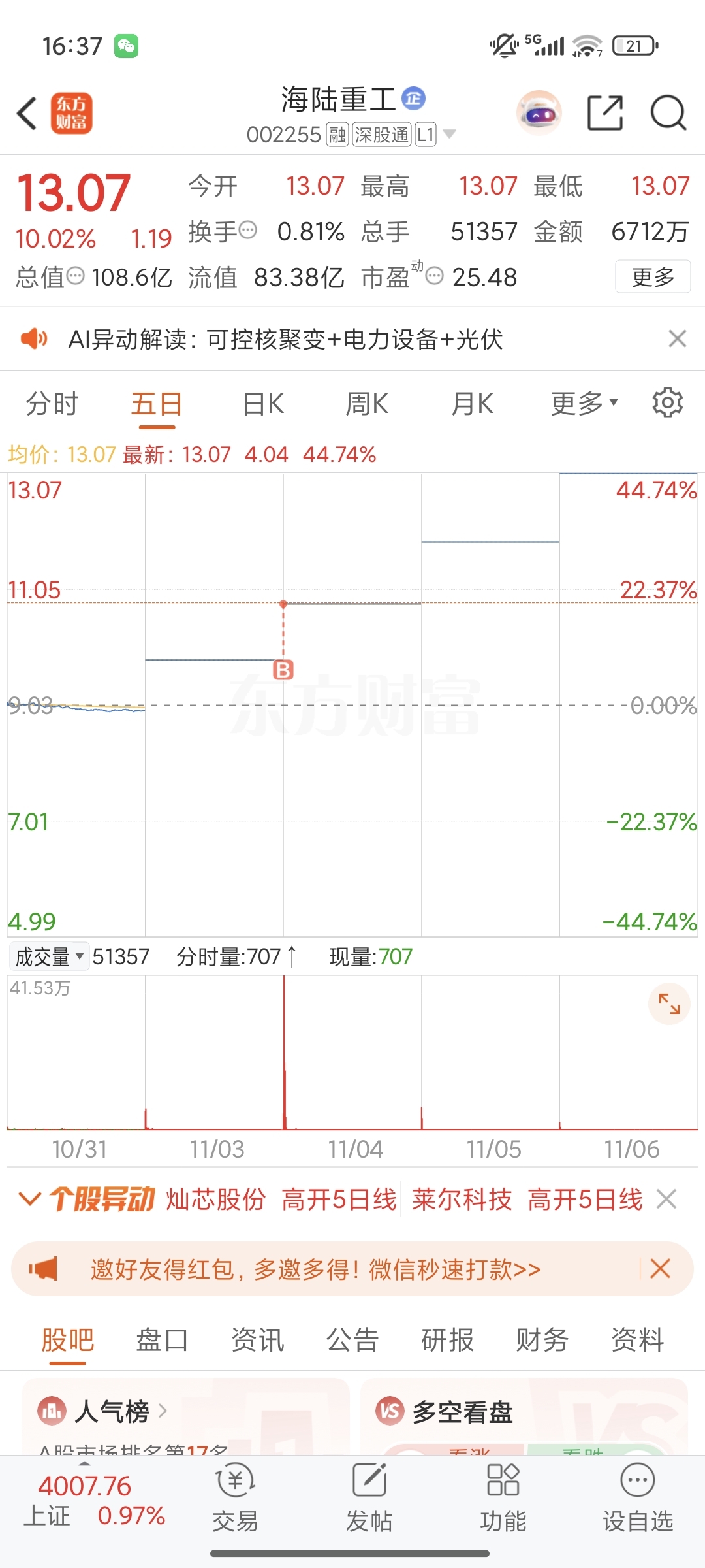 $海陆重工(SZ002255)$ 人赚不到自己认知之外的钱