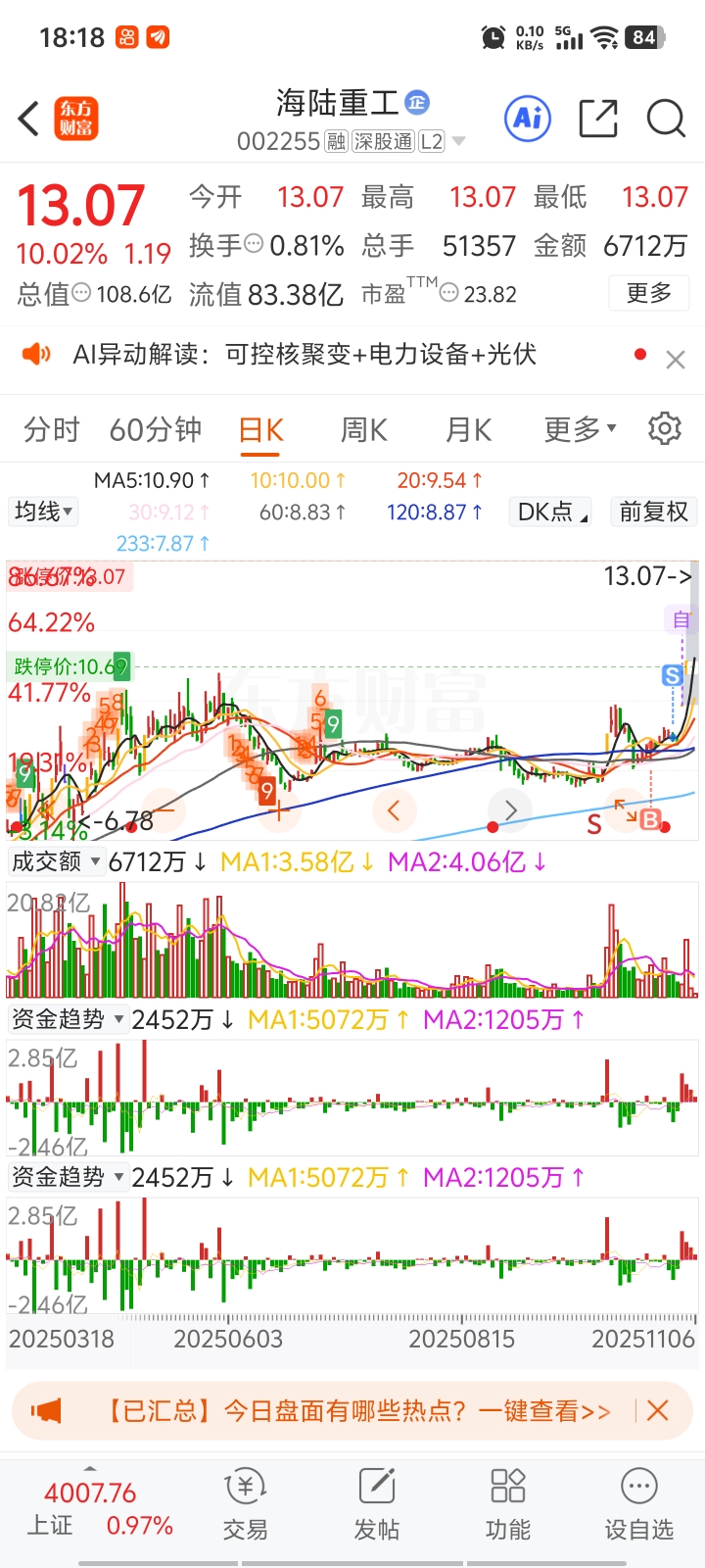 $海陆重工(SZ002255)$ 在多拿两天就行