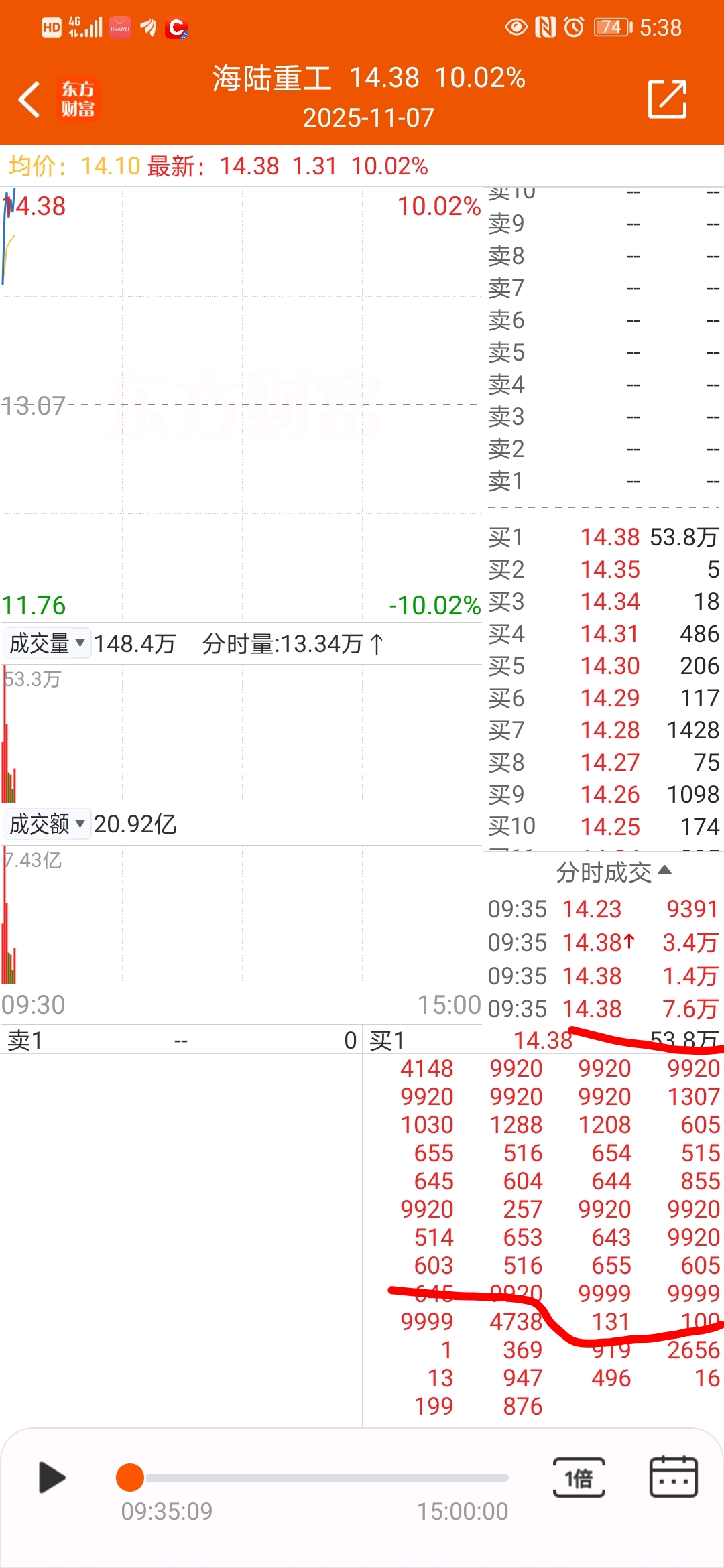 $海陆重工(SZ002255)$ 欢乐海岸板上买的18万个万手2.6个小目标,两个进去的9999应该是作手新一,封板的那一刻就没有散户买进去