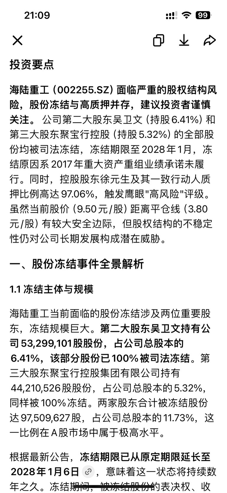 有懂行的不,第二第三大股东100%的股份都被司法冻结了,控股股东以及一致行动人也
