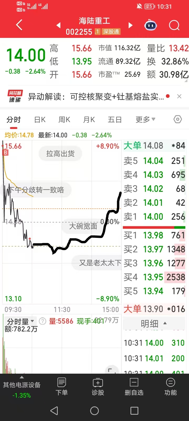 $海陆重工(SZ002255)$ 今天就这样支就可以了