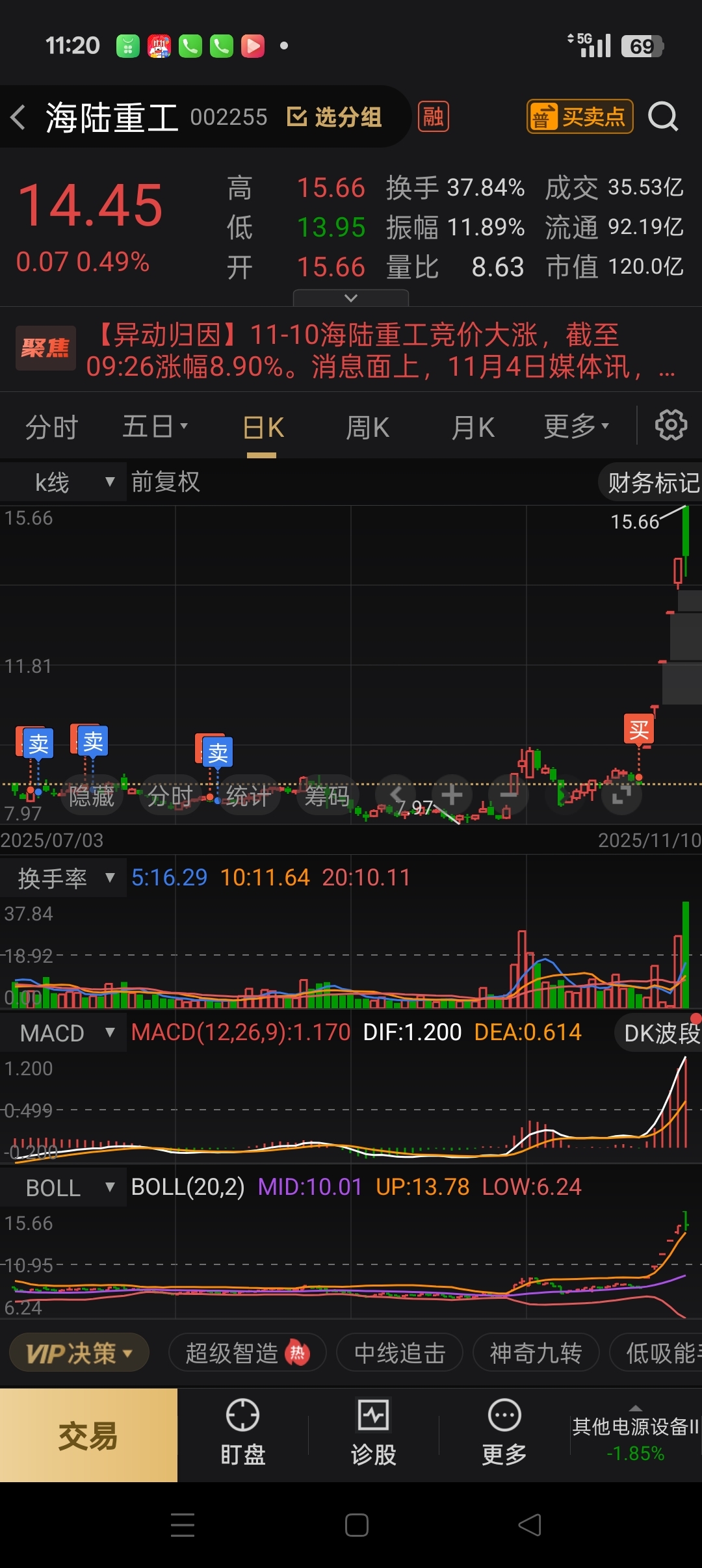 $海陆重工(SZ002255)$ 没卖,不知对么?!