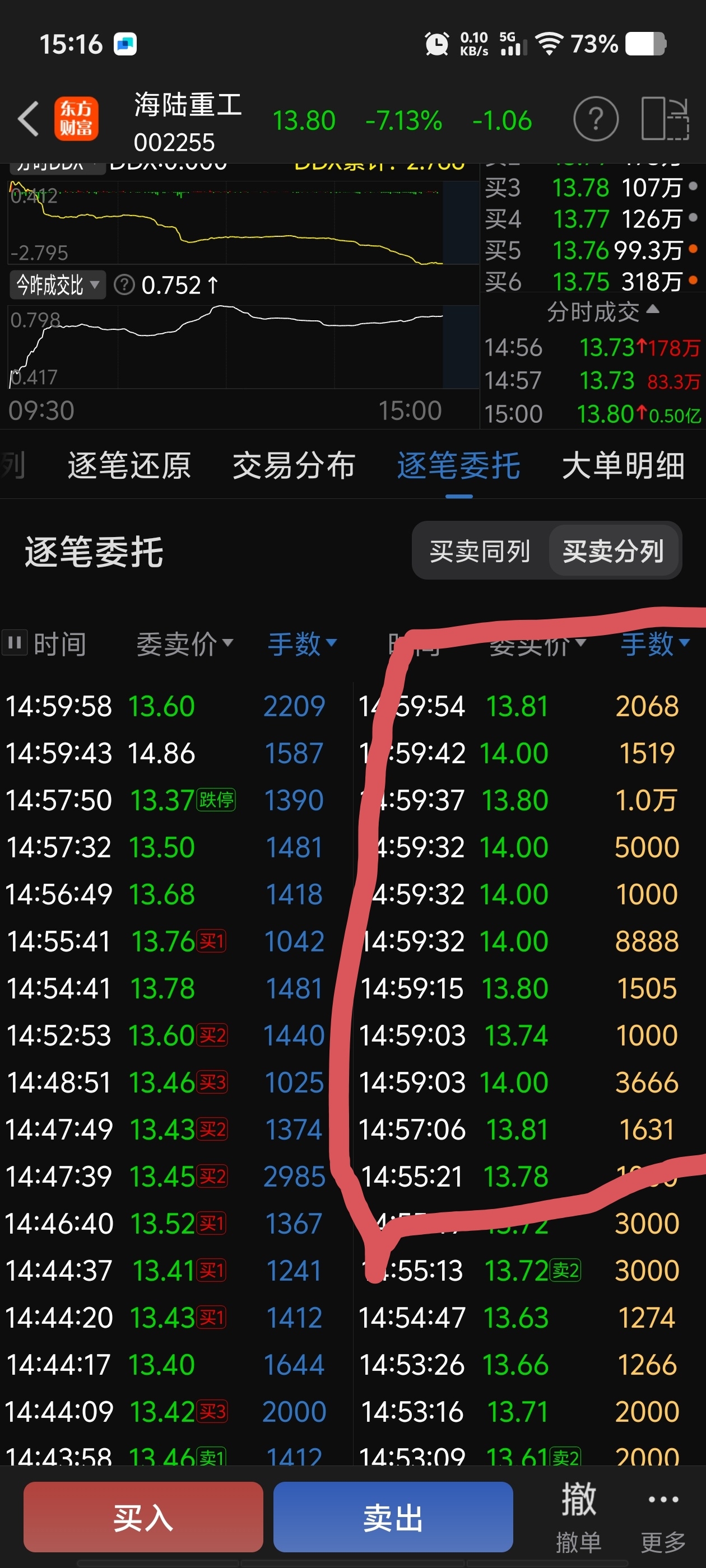 $海陆重工(SZ002255)$ 集合竞价抢筹的大单很多,抢跑的大单没几个,盲猜尾盘出利好了。