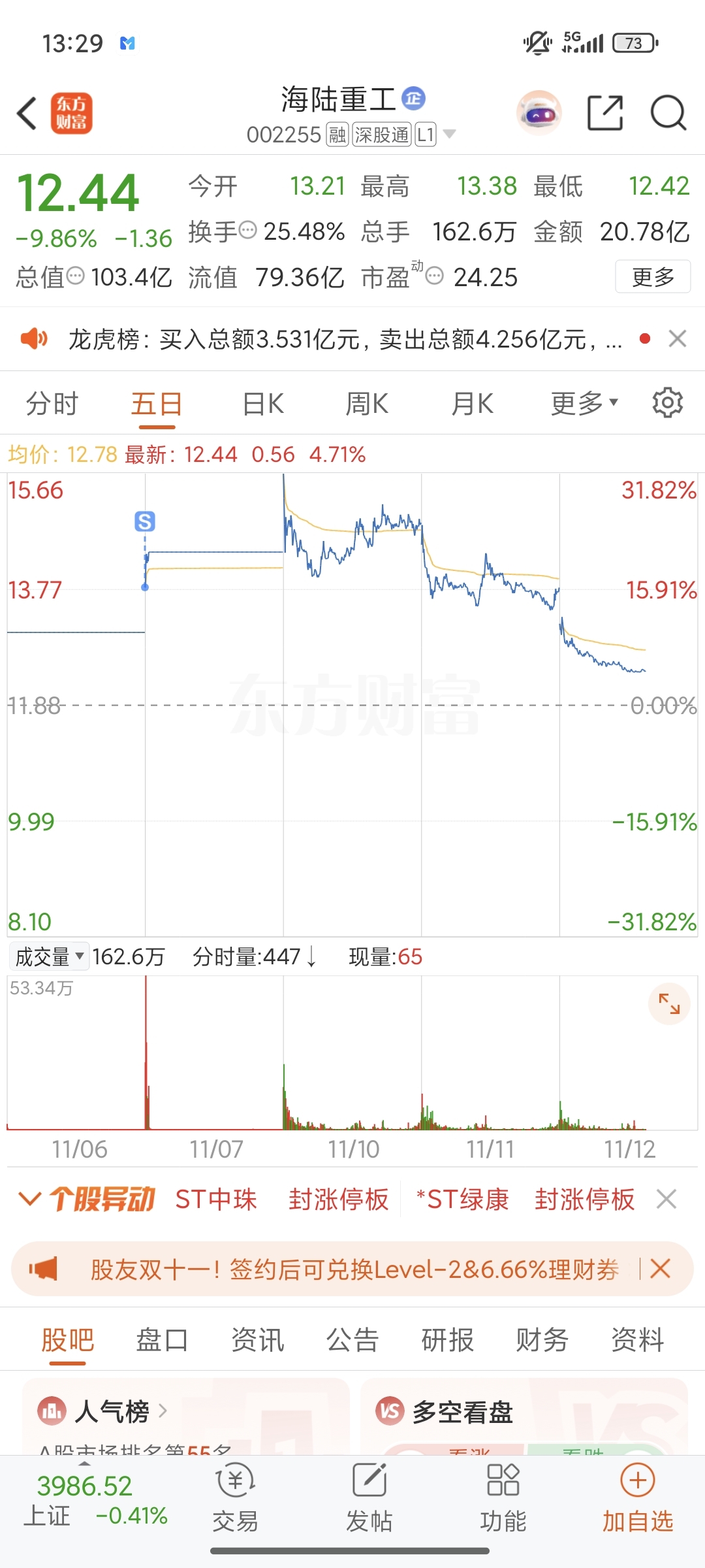 $海陆重工(SZ002255)$ 可惜没卖到最高