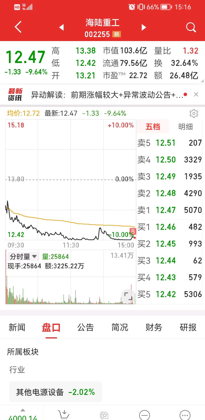 $海陆重工(SZ002255)$ 昨天尾盘买反弹,结果竞价最后一秒涨了7分钱,没成交