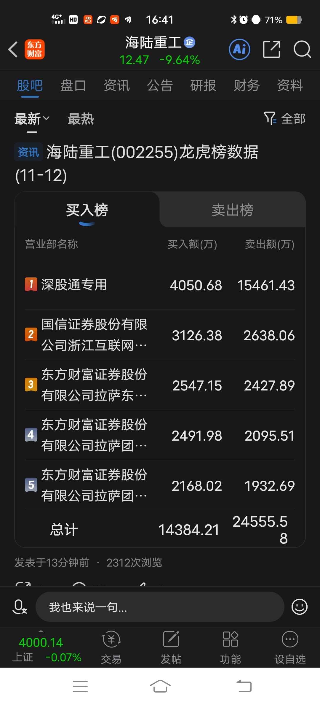 $海陆重工(SZ002255)$ 牛尾是真不能抄底了亏两百不甘心尾盘跌停又来了。看来明天得亏300