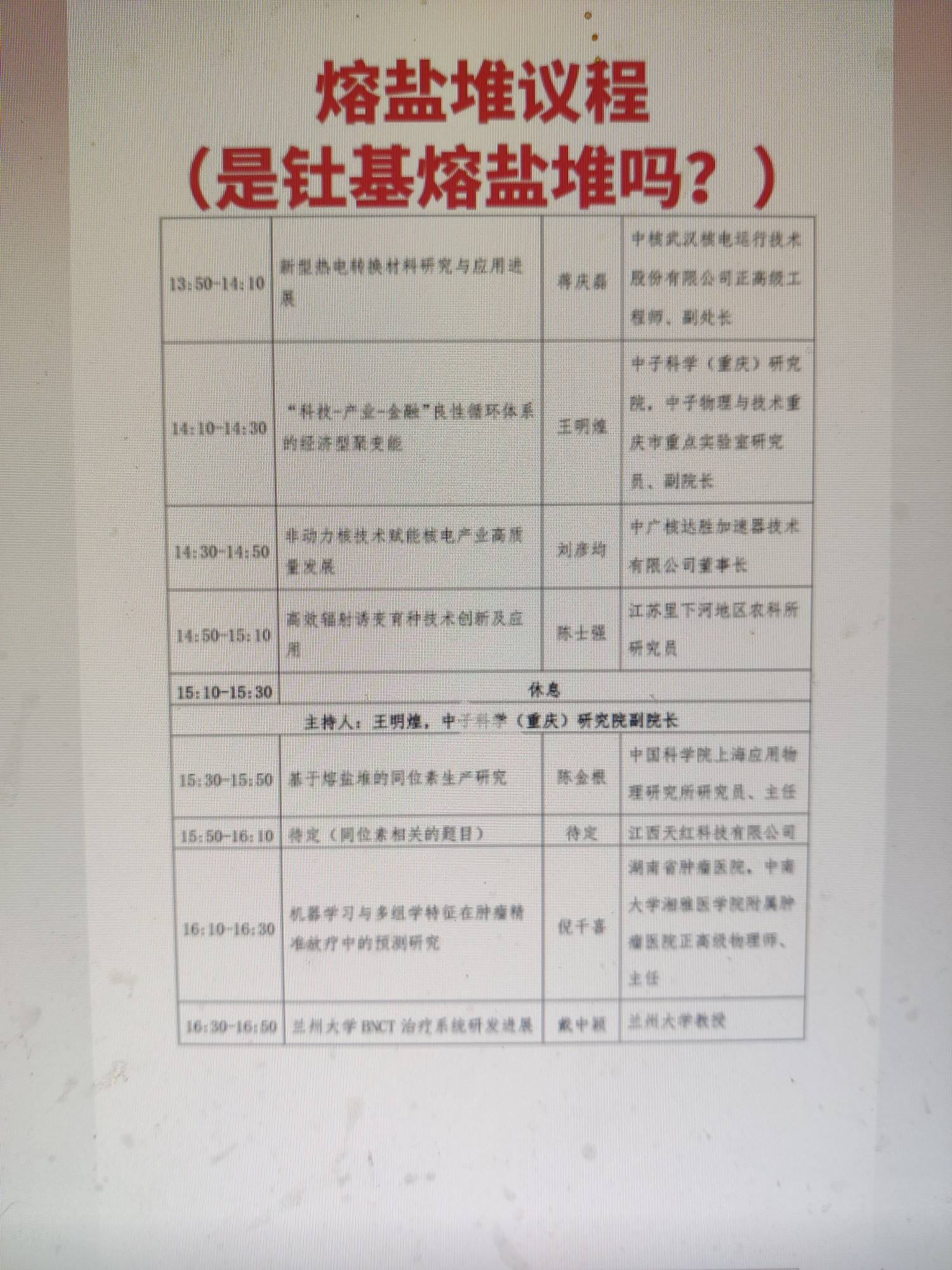 好像今天下午3点后深深核博会有灶基熔盐堆消息