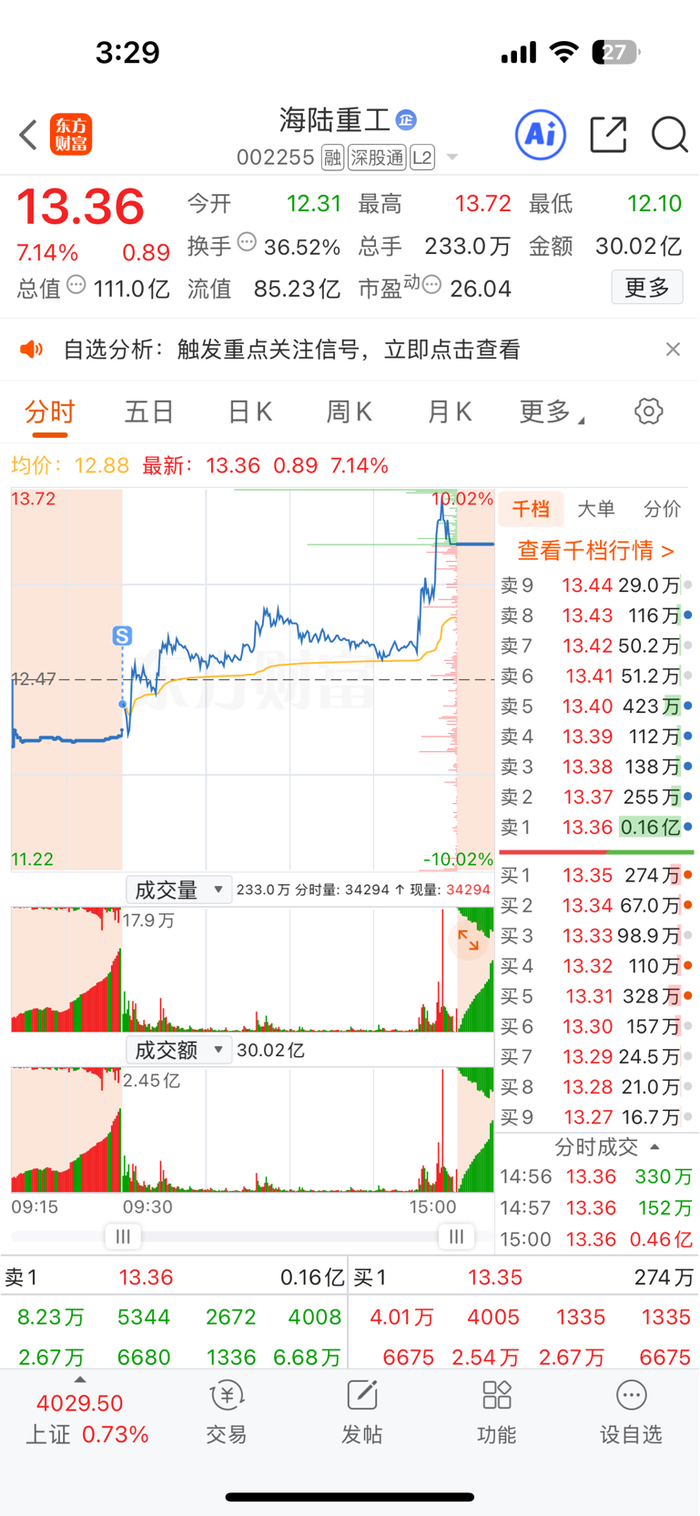 $海陆重工(SZ002255)$ 非常棒,加油
