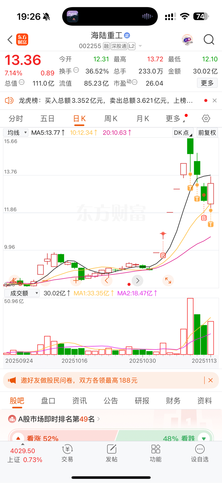 $海陆重工(SZ002255)$ 坐过山车真煎熬、希望来个二波三波吧、