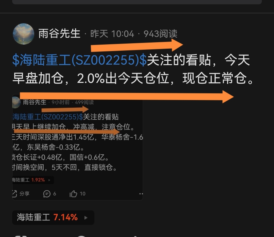 $海陆重工(SZ002255)$ 关注的着贴,没有关注看缘份,早盘先减仓,落袋为安。尾盘考虑回来。注意仓位。