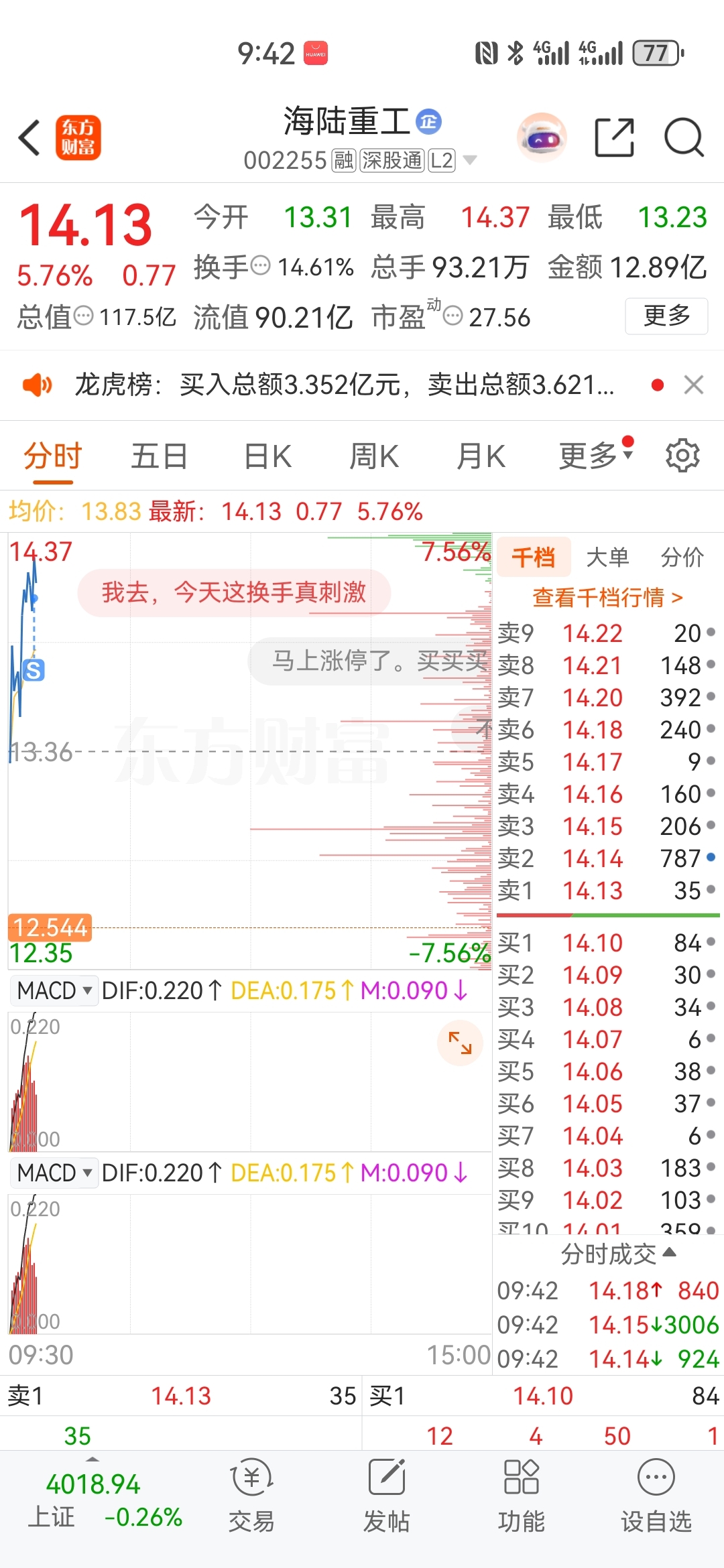 $海陆重工(SZ002255)$ 赚十个点走了