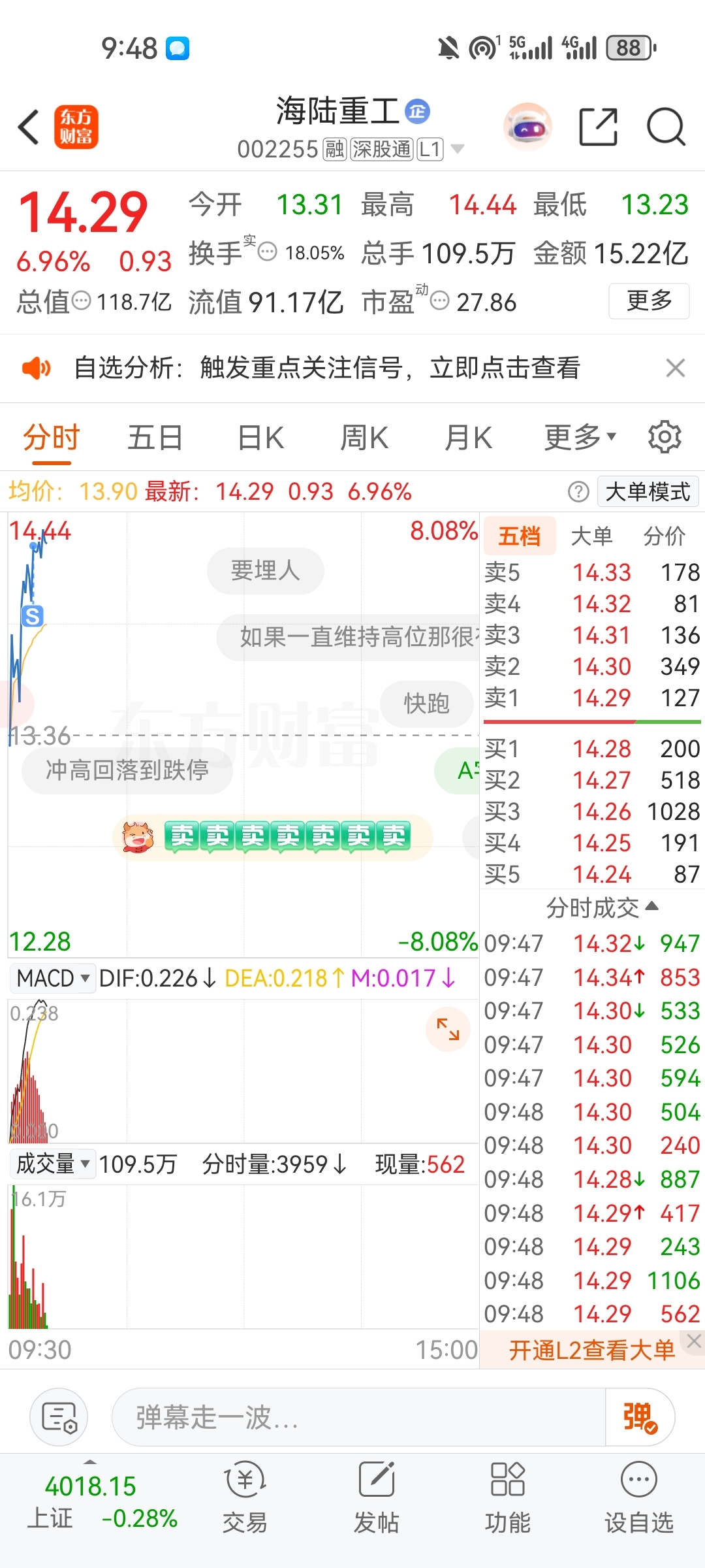 $海陆重工(SZ002255)$ 谢谢主力,两天12个点到手,符合我的预期,后市如何不参与博弈了,祝里面的兄弟发财