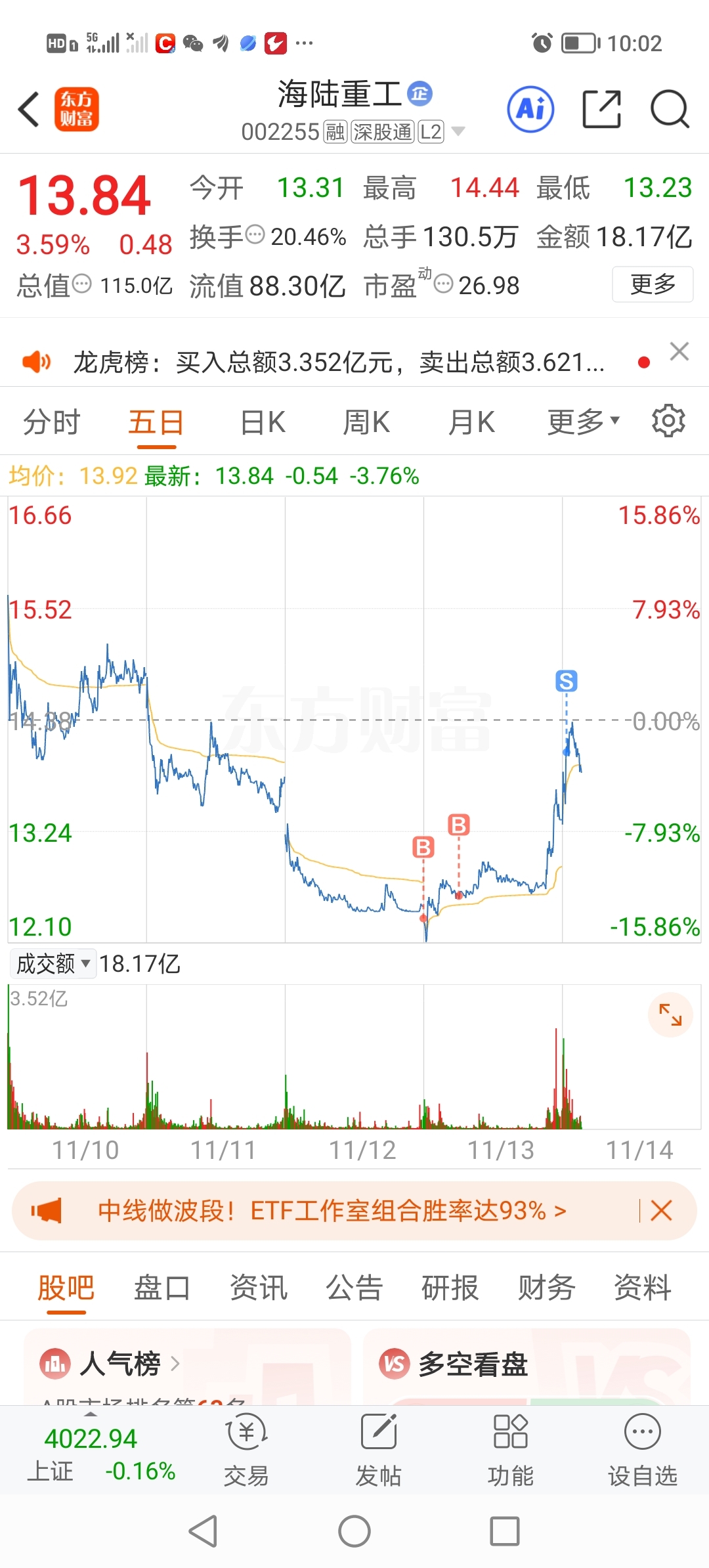 $海陆重工(SZ002255)$ 我先走了 祝你们发财