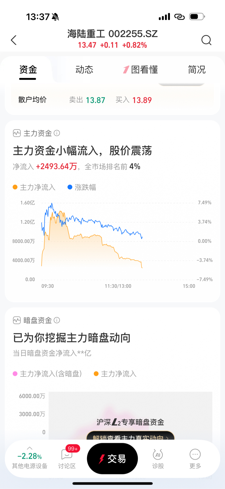 $海陆重工(SZ002255)$ 快跑 早上进的下午都吃光了