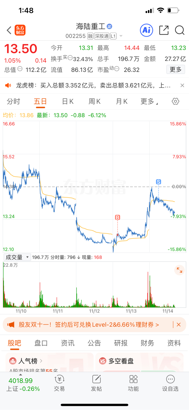 $海陆重工(SZ002255)$ 我真的格局了,格局就是利润缩水,怎么玩?昨天不封板,今早不封板,套谁呢