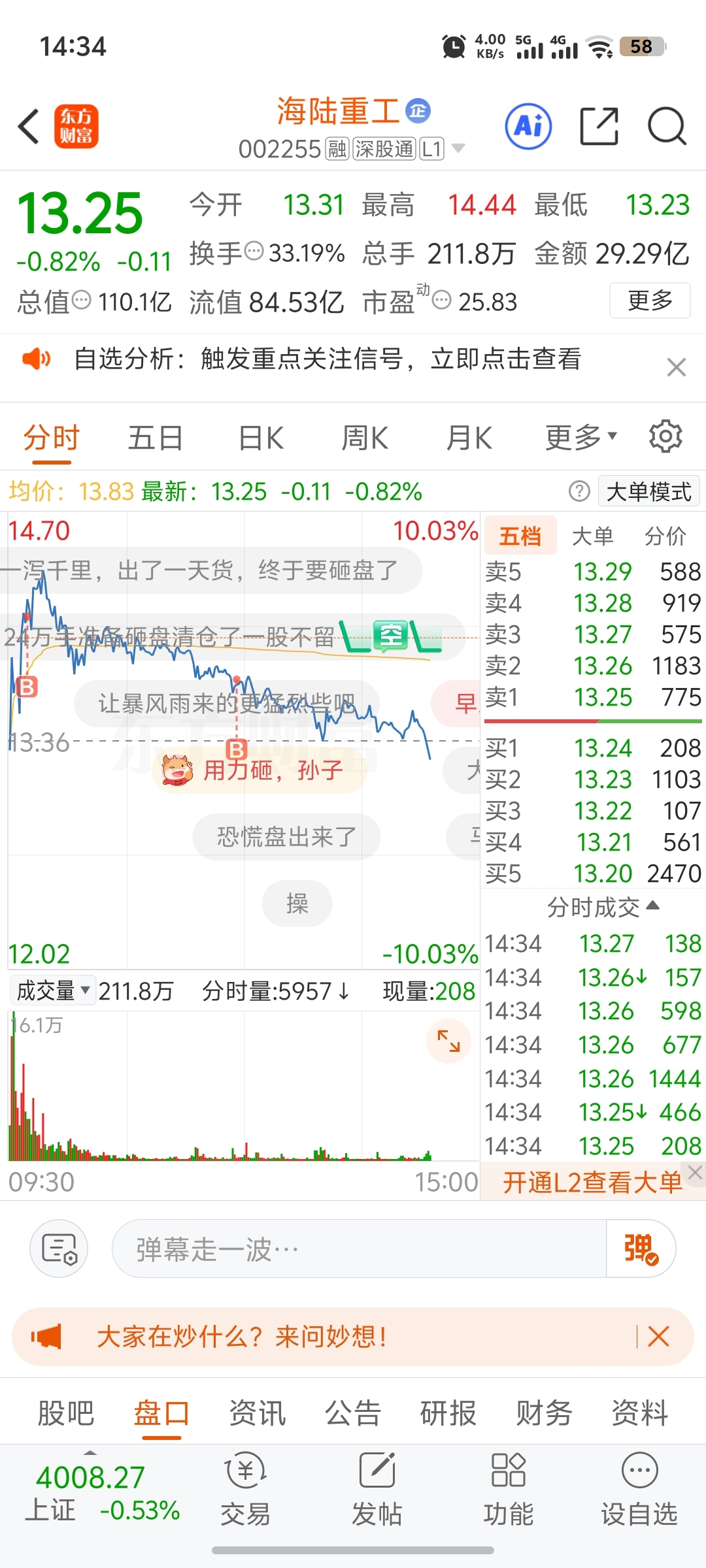 $海陆重工(SZ002255)$ 怎么买了你真是c