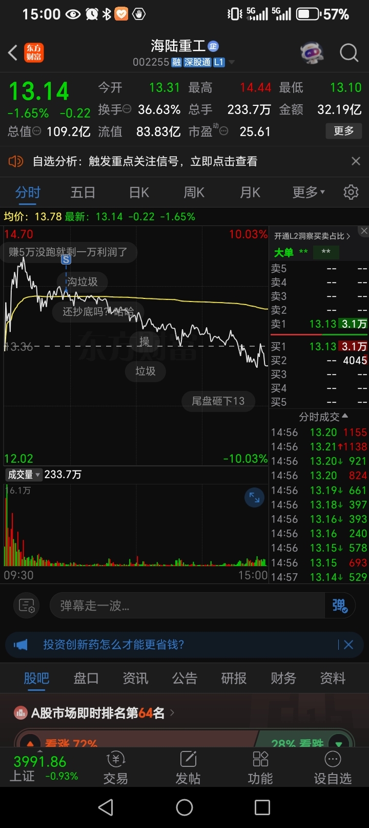 $海陆重工(SZ002255)$ 太特么扯淡了,挂了涨停结果最高就涨到8个点,不过幸好4个多点卖了