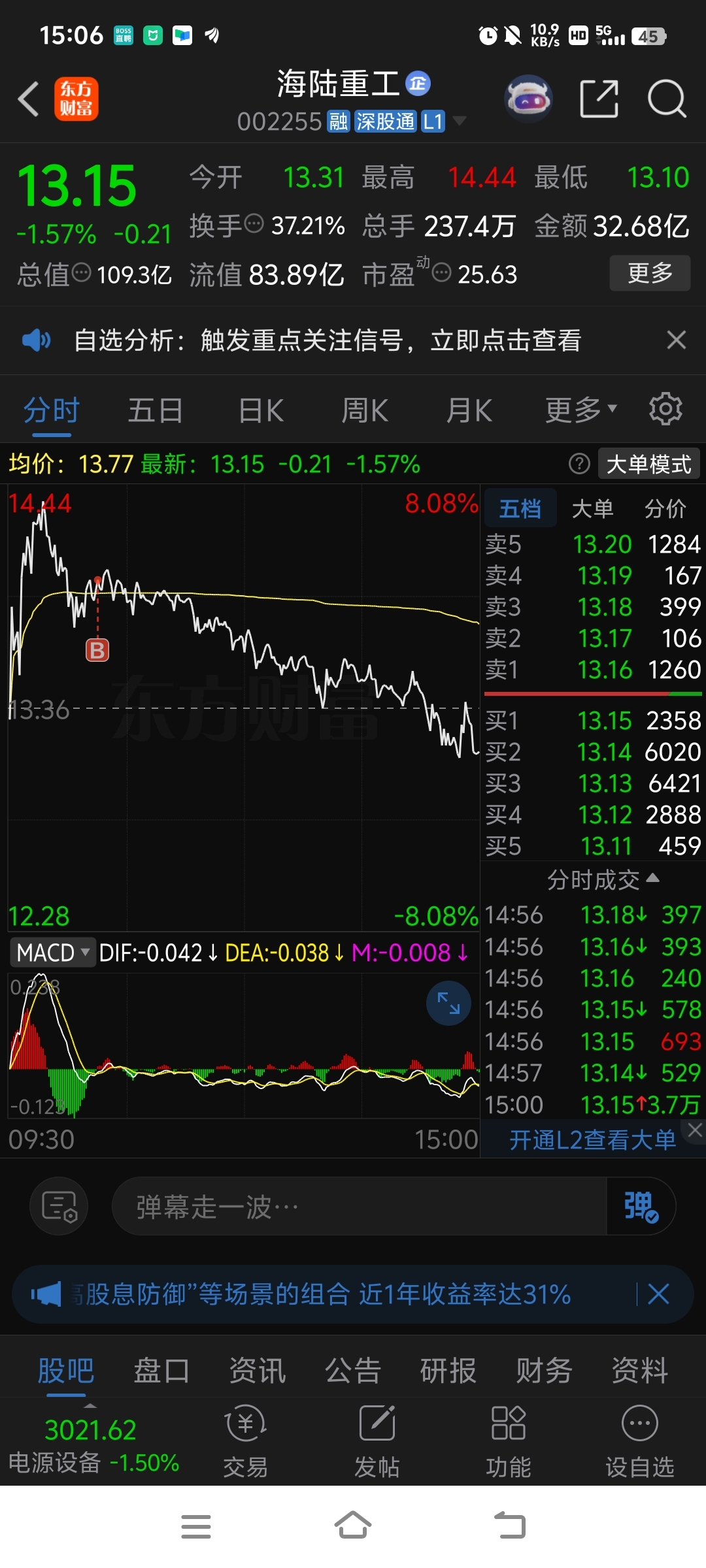 $海陆重工(SZ002255)$ 干,进去就吃六个点,上影线吊的是我啊