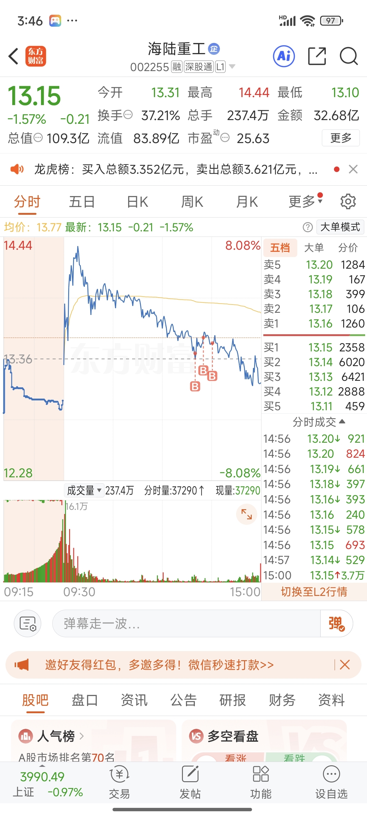$海陆重工(SZ002255)$ 买的还是早了一点点,问题不大!