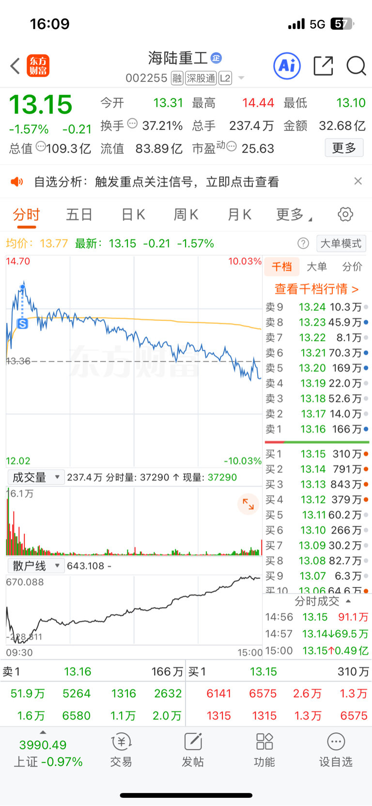 $海陆重工(SZ002255)$ 幸好刚好在厕所拉 都拉完了还不涨停 顺手就给全部卖了