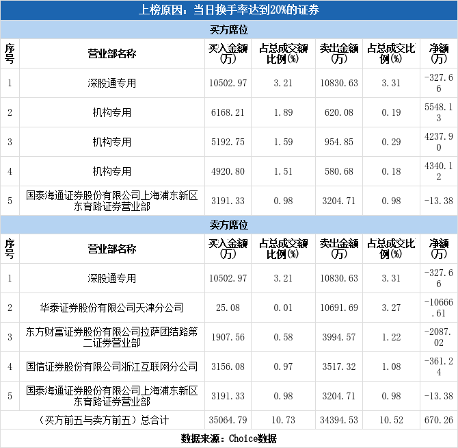多主力现身龙虎榜,海陆重工换手率达37.21%(11-14)