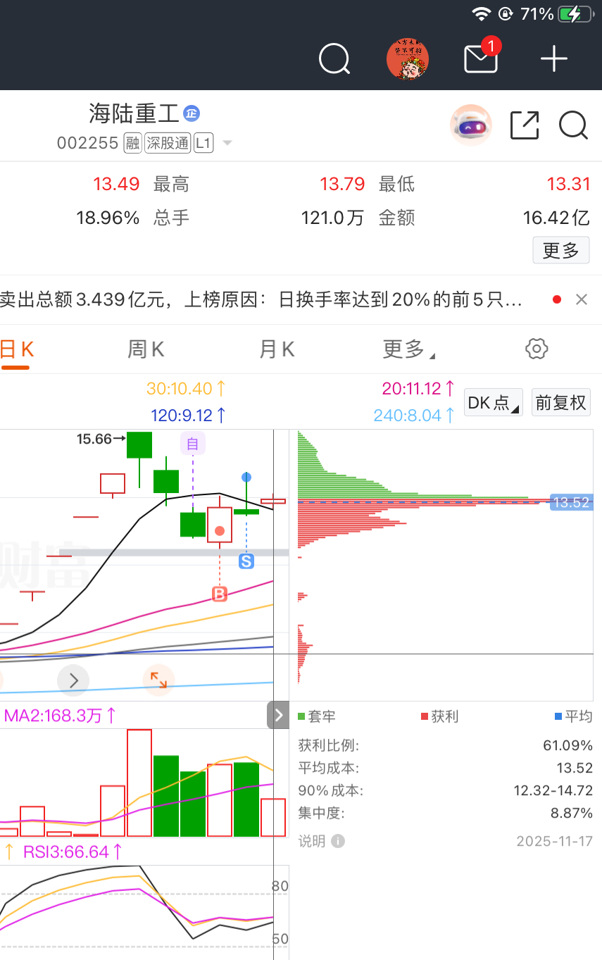 筹码又重新集中起来了,这个位置又可以进了,今天是个不错的B点,主力在偷偷吃货,核