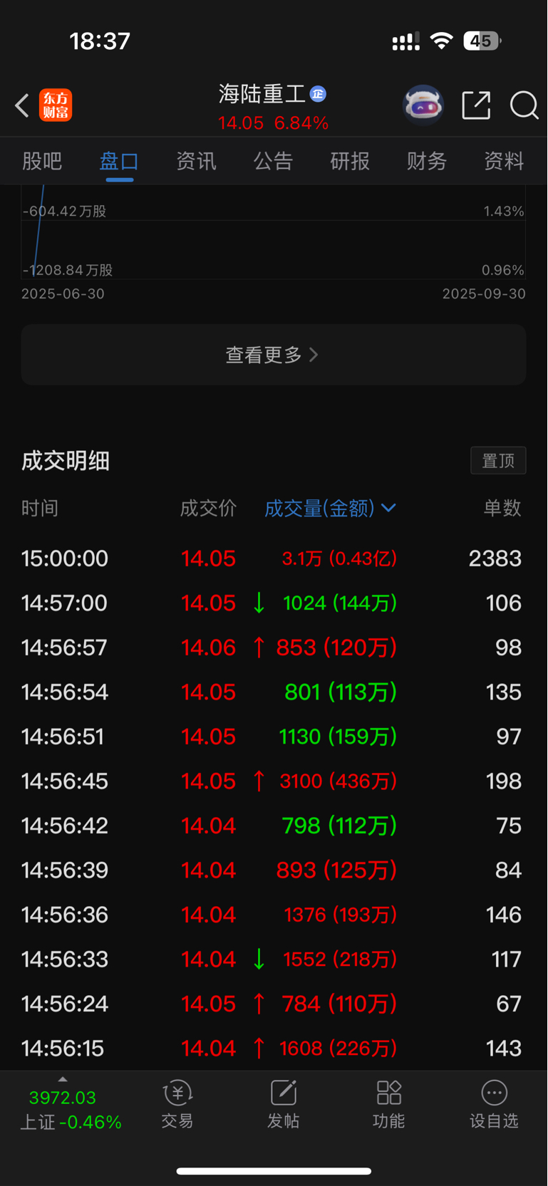 $海陆重工(SZ002255)$ 收盘买入4300万,明天真的要总攻了