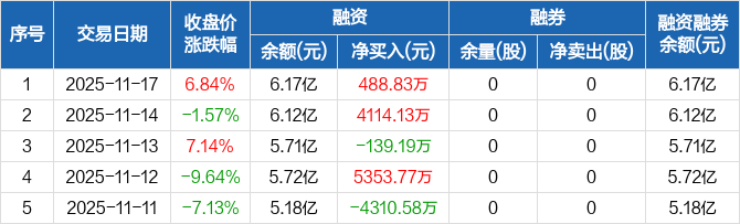 海陆重工:融资净买入488.83万元,融资余额6.17亿元(11-17)