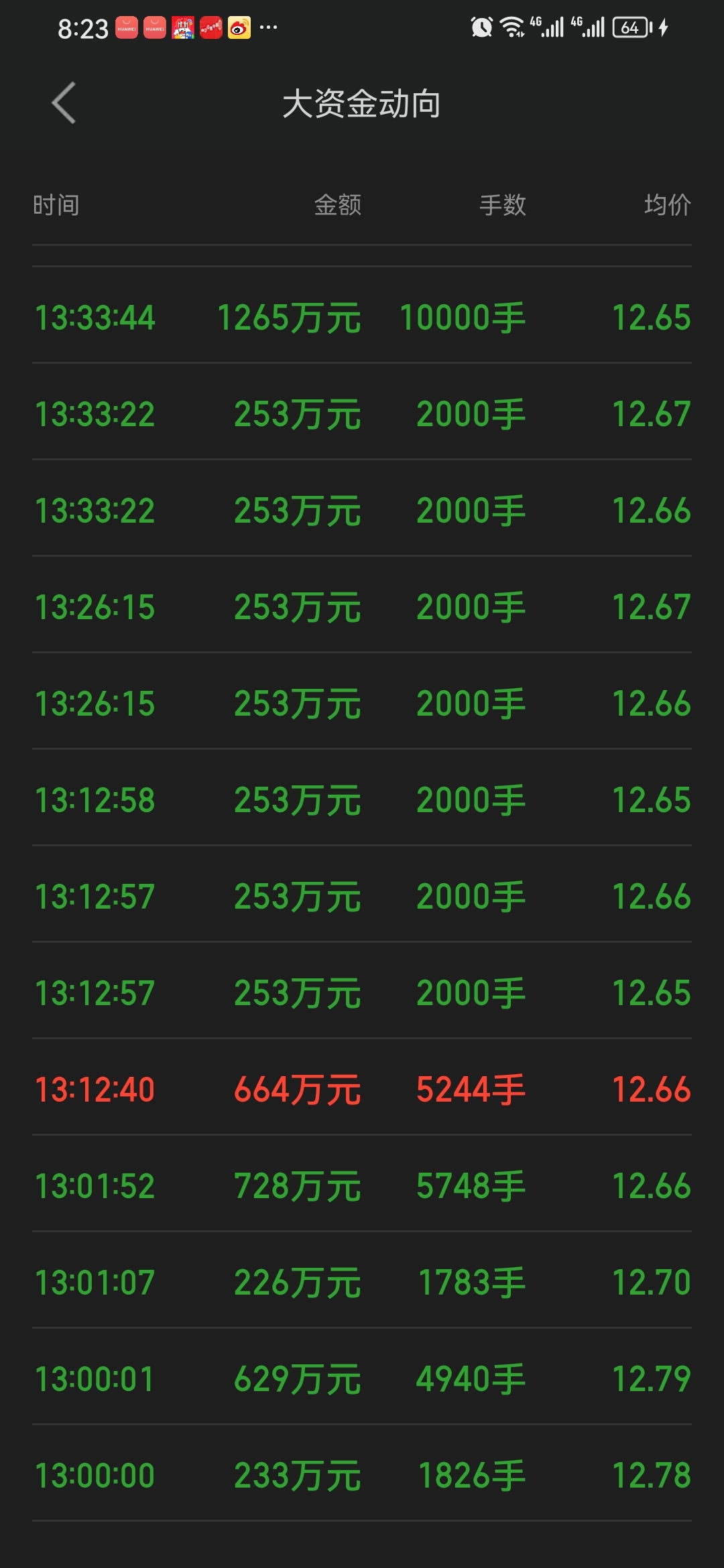 下午1点开盘,这个2000手一直砸12.65,明显是做空想第二天捡筹码