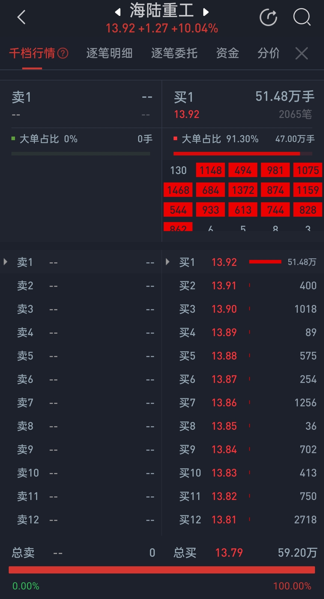 $海陆重工(SZ002255)$ 全是大单,万手哥在顶,怕毛啊,又没撤单。