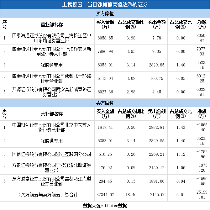 深股通现身龙虎榜,海陆重工涨停(11-19)