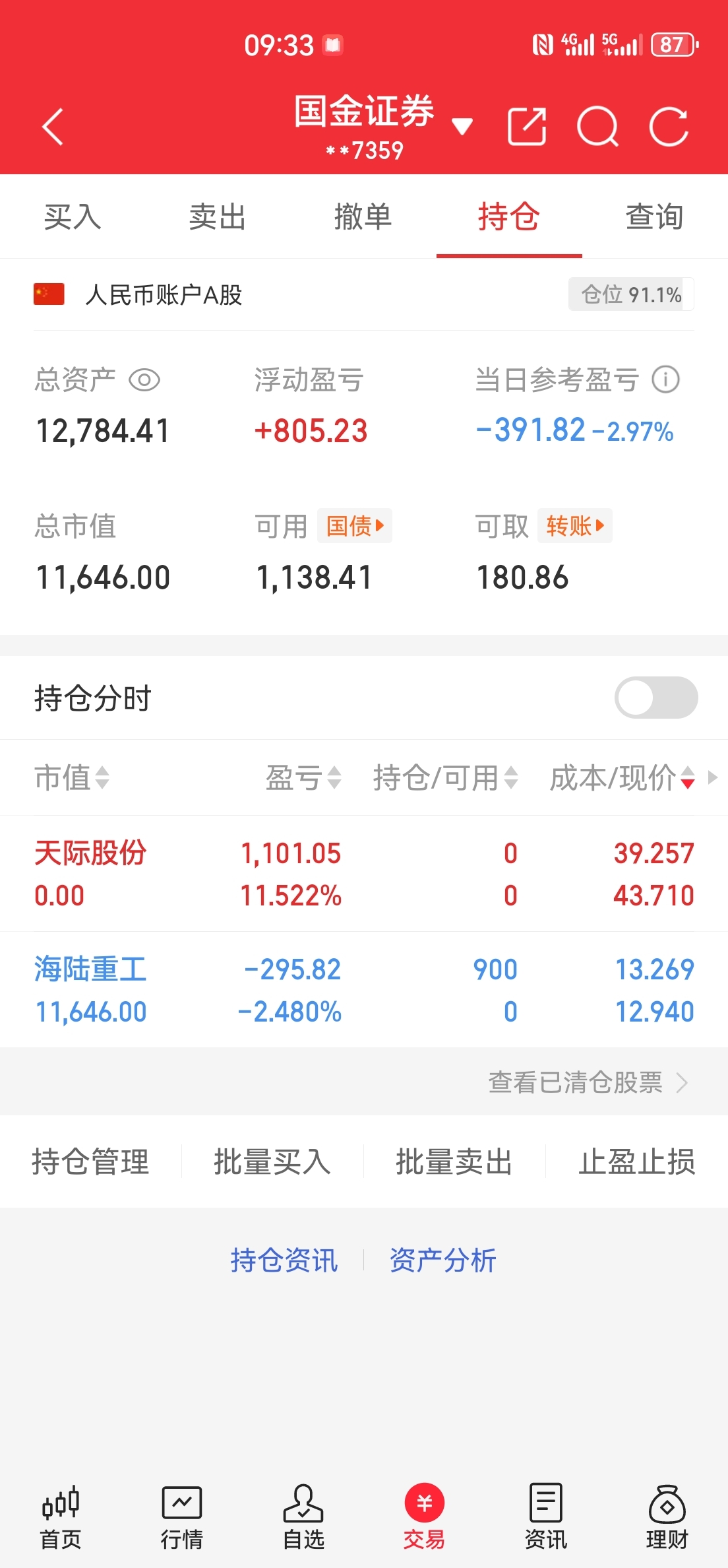 一万到一百万第27天,天际开盘走了,-0.5买了海陆重工