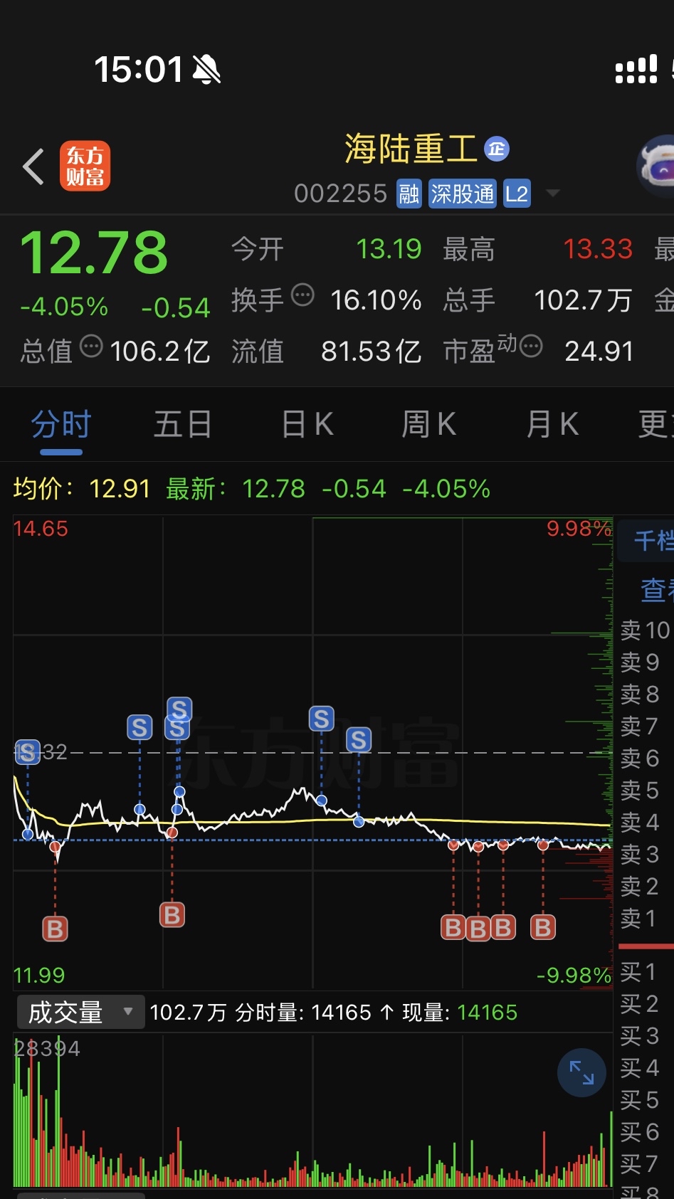 $海陆重工(SZ002255)$ 真好玩,明天接着干