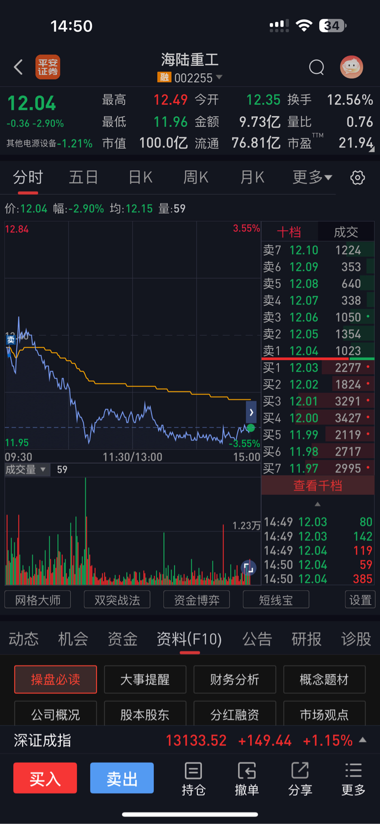 $海陆重工(SZ002255)$ 12.33清了 清早了清完就拉...