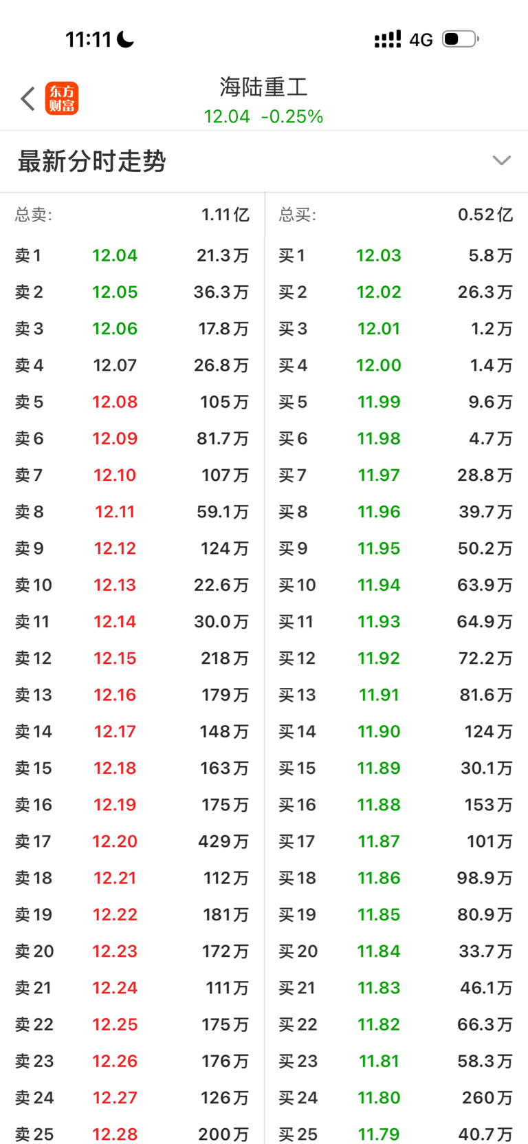 $海陆重工(SZ002255)$ 一个亿就涨停两个亿就能封