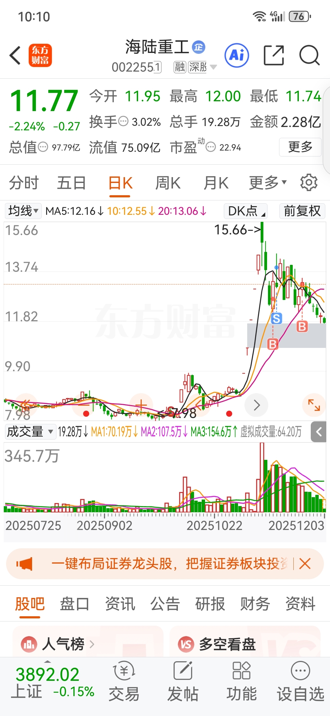 $海陆重工(SZ002255)$ 已经跌了20多个点了,股民失望寒心啊!