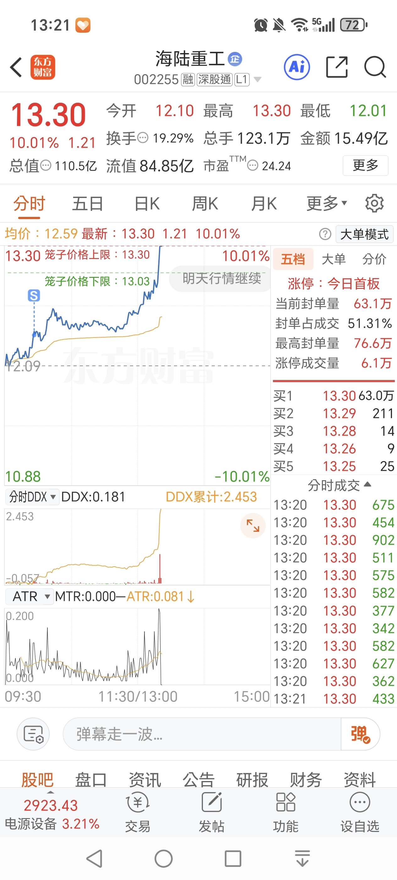 $海陆重工(SZ002255)$ 终于涨停了哈哈