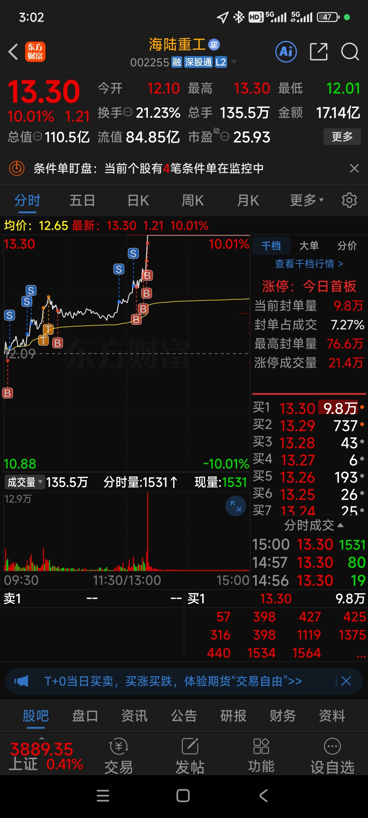 $海陆重工(SZ002255)$ 哥不走,准备常驻