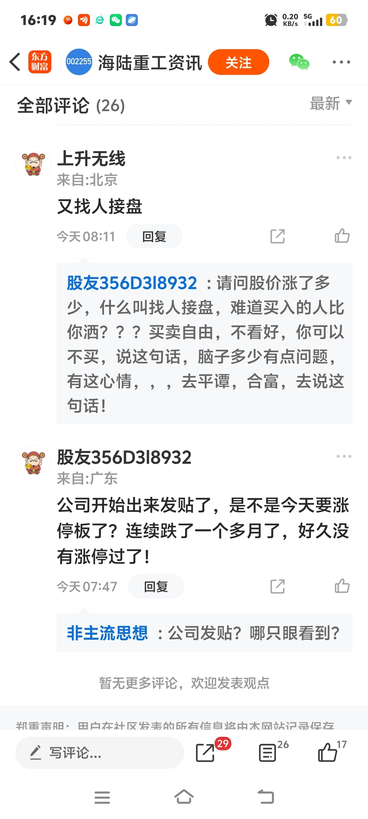 温馨提示: 1.根据《证券法》规定,禁止编造、传播虚假信息或者误导性信息,扰乱证券市场;2.用户在本社区发表的所有资料、言论等仅代表个人观点,与本网站立场无关,不对您构成任何投资建议。用户应基于自己的独立判断,自行决定证券投资并承担相应风险。《东方财富社区管理规定》