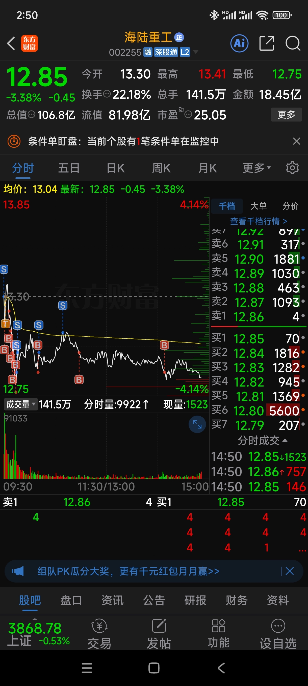 $海陆重工(SZ002255)$ 哥这次不走,与你们同在。