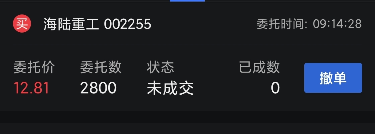 $海陆重工(SZ002255)$ 头疼,差一分